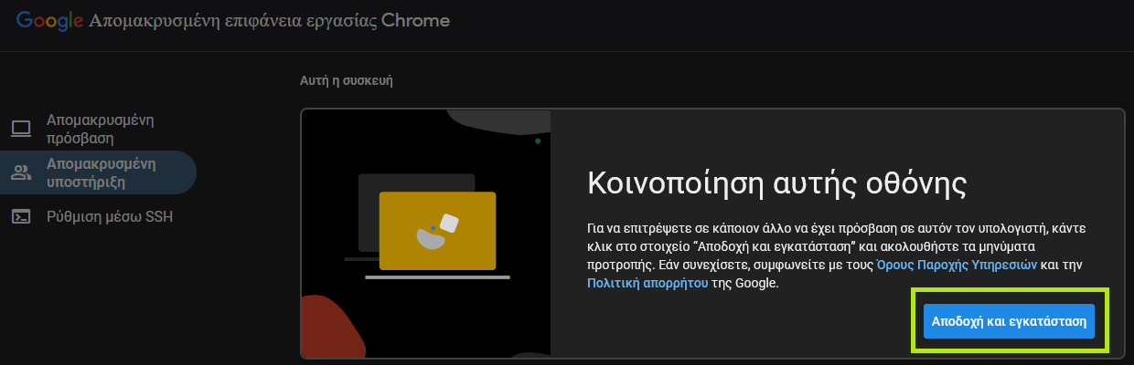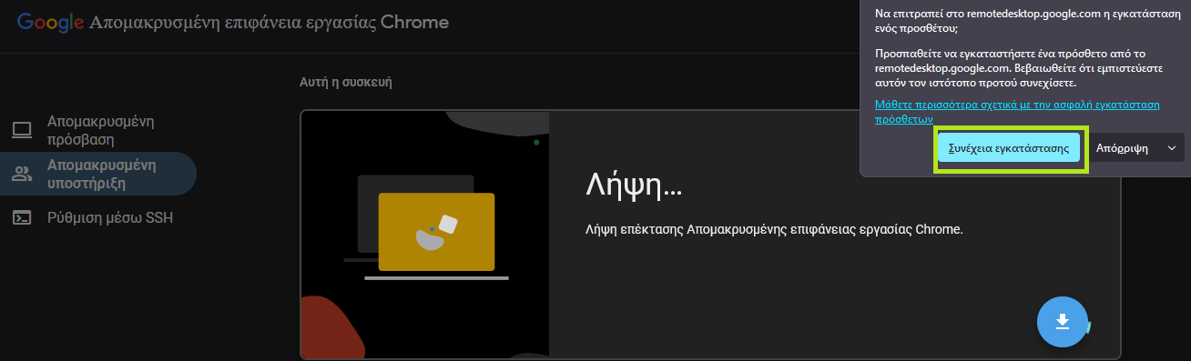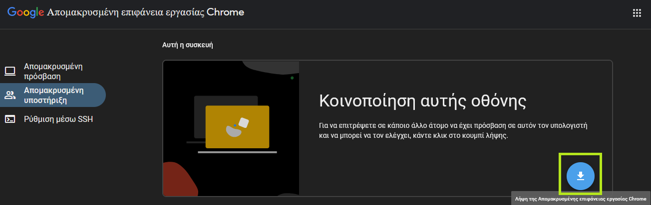 - Πατήστε τον επόμενο σύνδεσμο και συνδεθείτε με το Google λογαριασμό σας αν δεν έχετε ήδη συνδεθεί (εφόσον σας ζητηθεί): https://remotedesktop.google.com/support