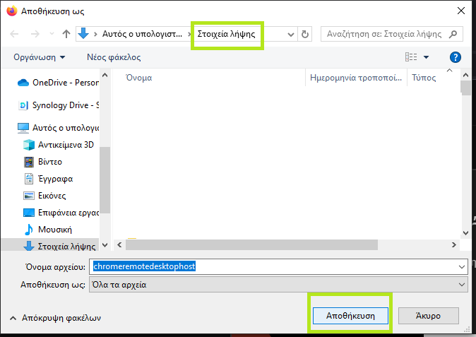- Στο παράθυρο που θα ανοίξει επιλέγουμε Αποθήκευση και προσέχουμε σε πιο φάκελο θα γίνει η αποθήκευση (ίσως χρειαστεί στη συνέχεια)