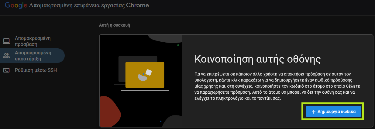 Για απομακρυσμένη τεχνική υποστήριξη θα χρησιμοποιήσουμε το Remote Desktop της Google. Ακολουθήστε τα παρακάτω βήματα: